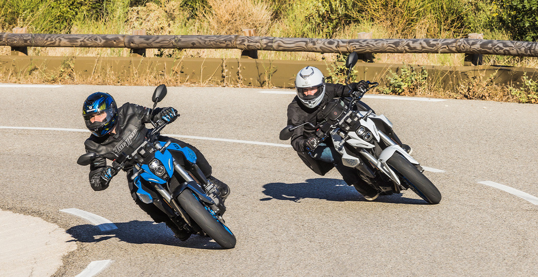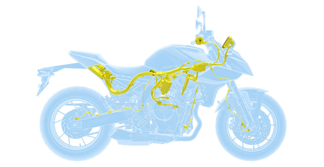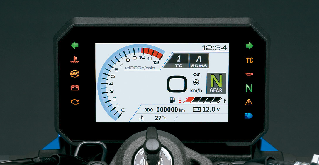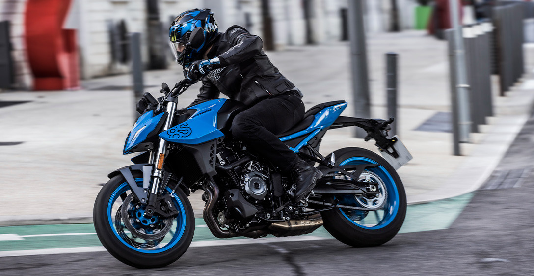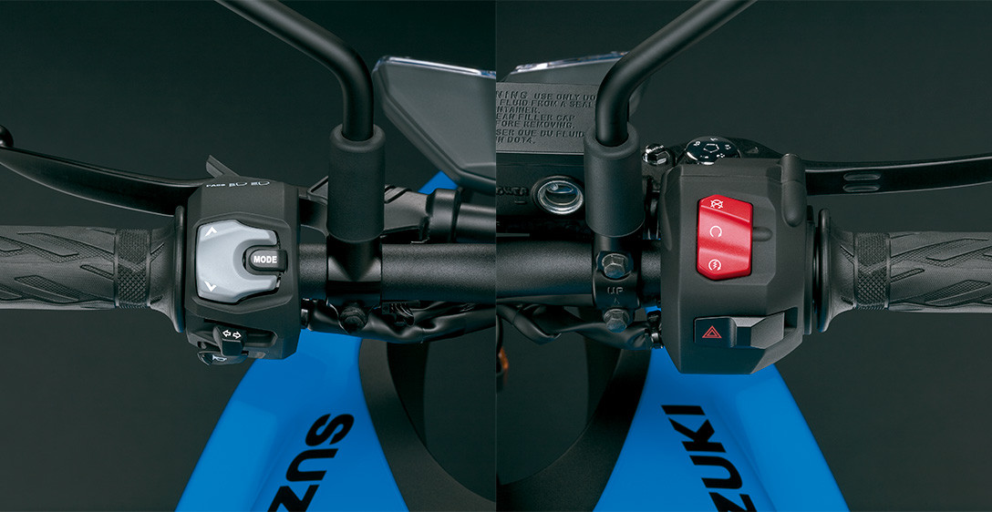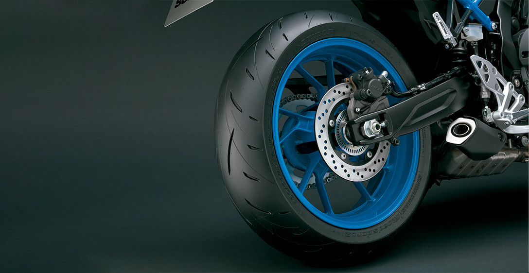 Tudo o que você precisa fazer é olhar para a GSX-8S para ver como o chassi foi cuidadosamente projetado para ser fino, compacto, leve, altamente ágil e ideal para suportar seu motor dois cilindros em linha de alto desempenho. Cada aspecto reflete um forte foco na excelente manobrabilidade e controle, mesmo quando conduzida com as malas laterais opcionais instaladas, e na minimização da fadiga, quer seja pilotando sozinho ou transportando passageiro. O chassi é composto por uma estrutura forte e altamente rígida, projetada para a GSX-8S. As longarinas de apoio do assento expostas fornecem suporte sólido, ao mesmo tempo que contribuem para uma aparência elegante e despojada de beleza funcional. A leve balança de alumínio, projetada exclusivamente para a GSX-8S, é otimizada para um desempenho ideal nas ruas. A geometria do chassis foi meticulosamente planeada para proporcionar estabilidade em linha reta e condução ágil, juntamente com uma posição de condução confortável que distribui eficazmente o peso na frente e na traseira. As dimensões compactas da dianteira e da parte de trás do novo motor bi cilíndrico em linha da Suzuki, beneficiam ainda mais a geometria do chassi ao definir um ponto de quadril posicionado para a dianteira, que permite transferir seu peso para a frente e controlar mais facilmente a GSX-8S ao mergulhar em curvas fechadas.