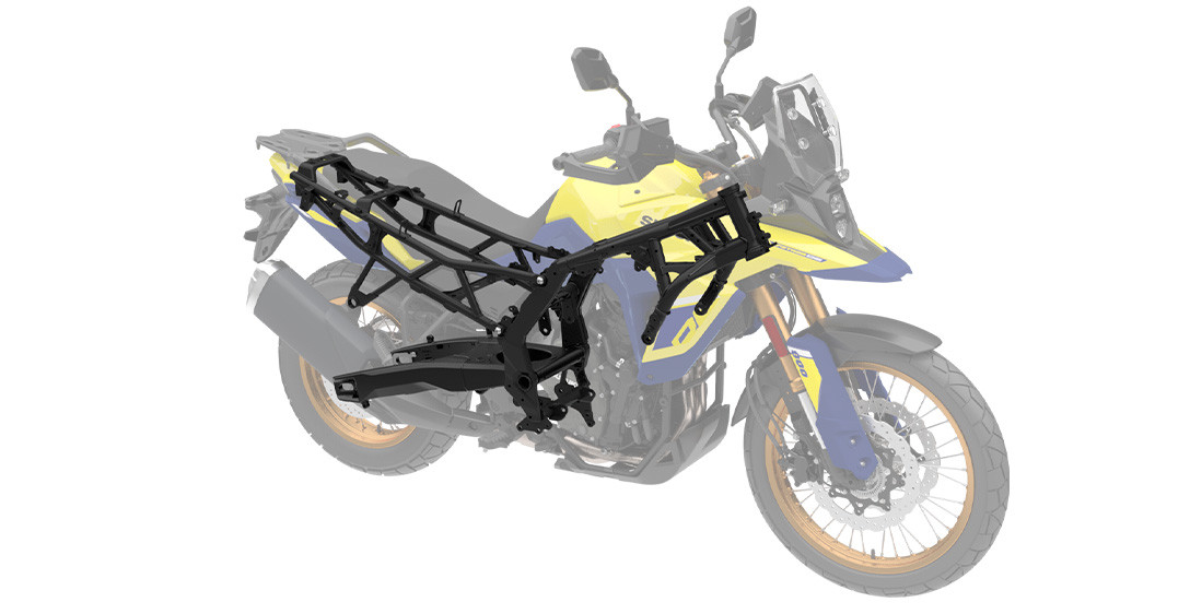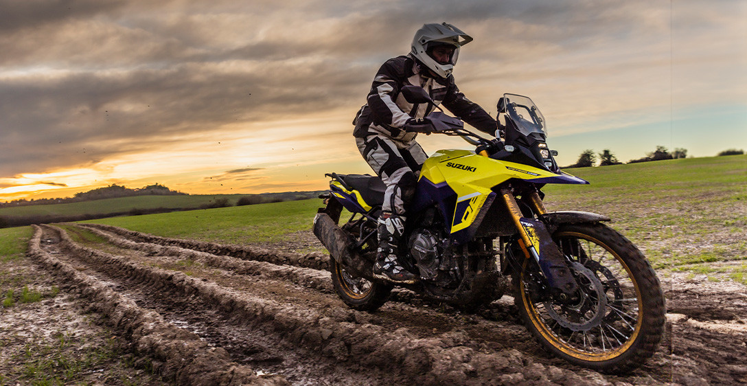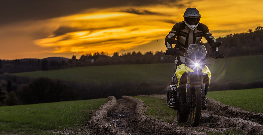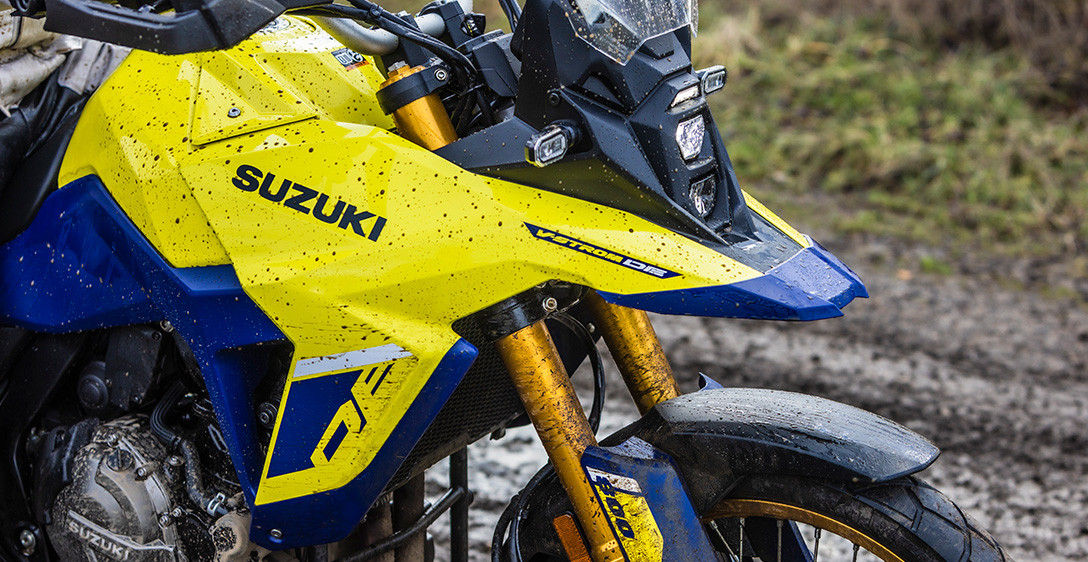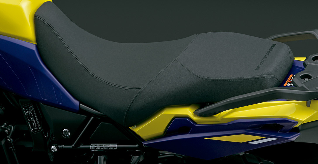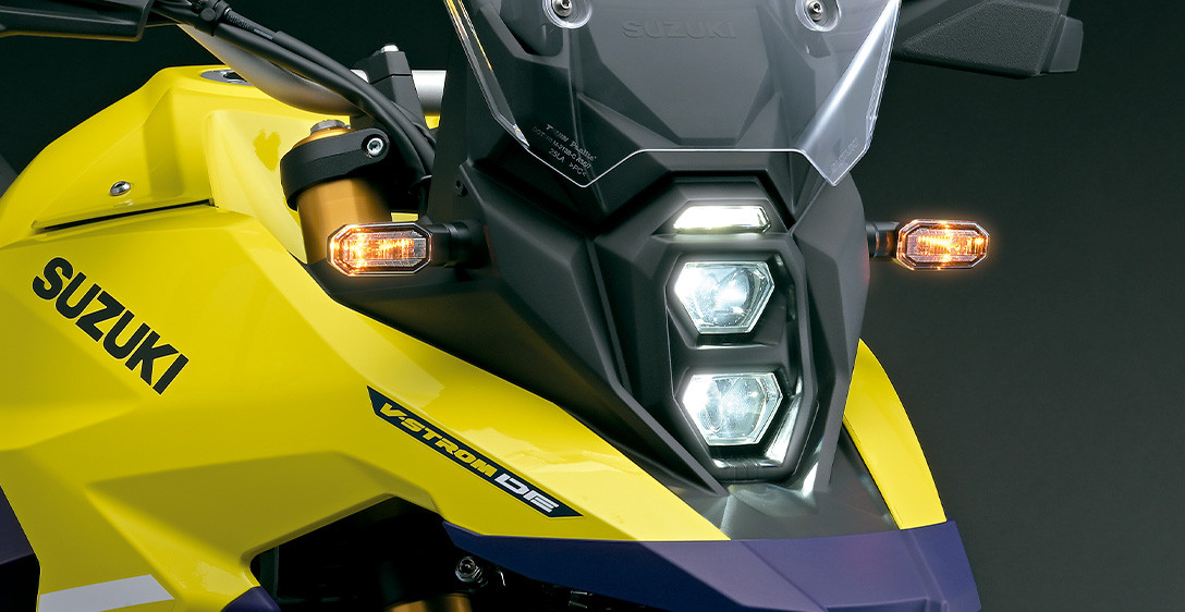 A V-STROM 800DE é uma aventureira de alto desempenho que é igualmente adequada para uso diário, na estrada e em passeios de alta velocidade, assim como para explorar estradas de cascalho e trilhas rurais. Cada aspecto do chassi foi projetado para promover excelente maneabilidade e controle em uma ampla gama de condições de pilotagem no mundo real, dando prioridade ao conforto e minimizando fadiga em viagens mais longas, mesmo quando transportando um passageiro e/ou levando malas. O robusto chassi de aço, a balança leve em alumínio de formato exclusivo, o pneu dianteiro de 21 polegadas, as rodas raiadas e a suspensão Hitachi Atemo (SHOWA), com curso suficiente para lidar com habilidade sobre o cascalho, são projetados para formar um pacote que fornece a resistência necessária para situações de pilotagens mais difíceis, trilhas, manuseio ágil, porem estável, e oferece bastante conforto em linha reta, em todas as velocidades. Embora o seu estilo permaneça fiel á herança V-STROM e ao espiríto de desing SUZUKI de criar expressões de estilos únicos, a V-STROM 800DE oferece o apelo de um novo visual totalmente moderno. O seu novo ""bico"" afiado está posicionado mais alto e mais afastado da roda dianteira para transmitir visualmente a sua capacidade de o levar além do local onde o pavimento termina. Seu conjunto de farol hexagonal de LED acentua a aparência elegante, leve e compacta da dianteira.