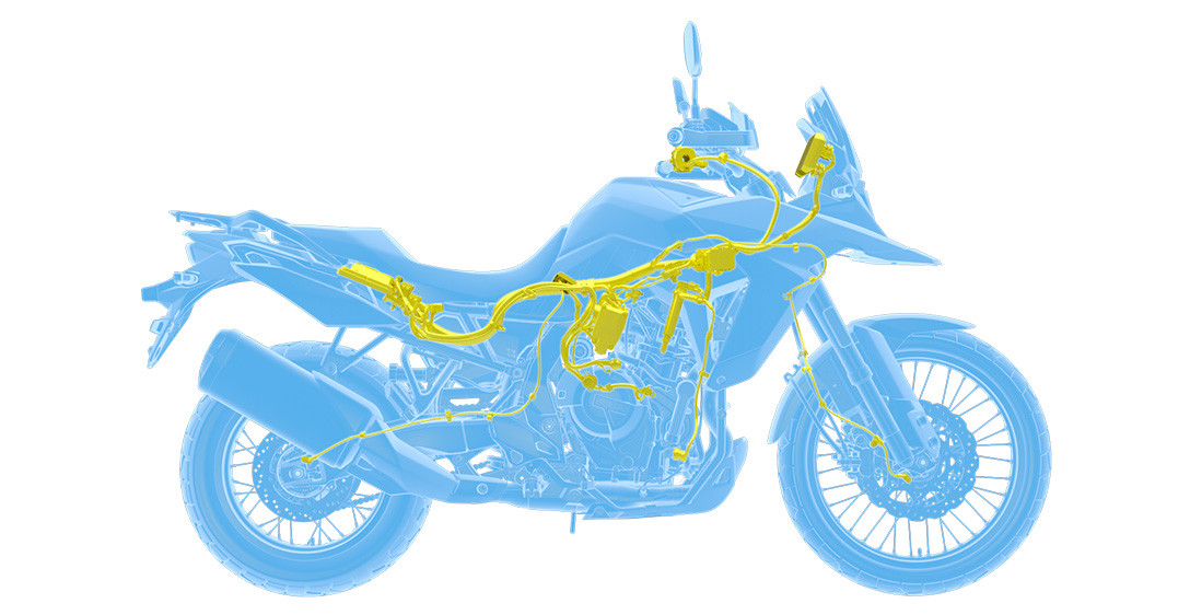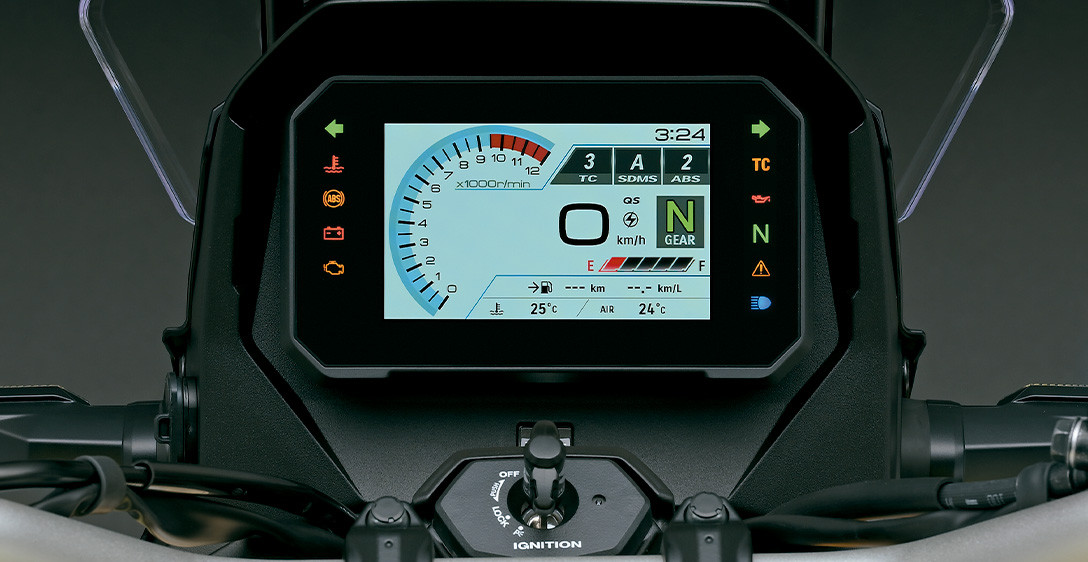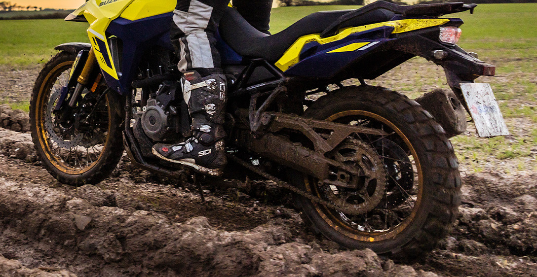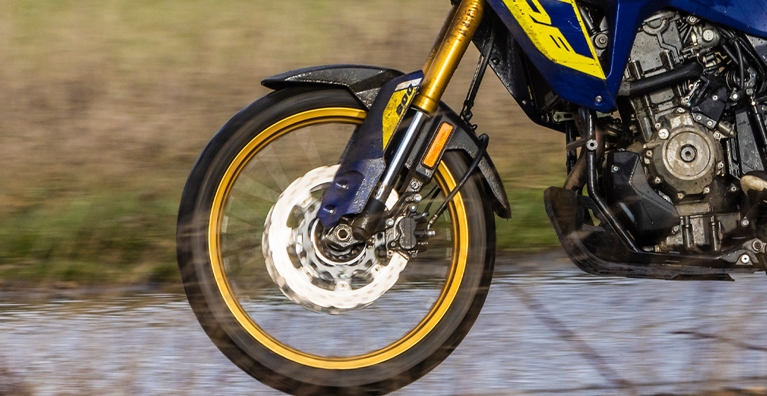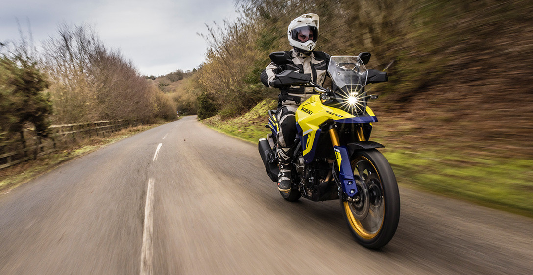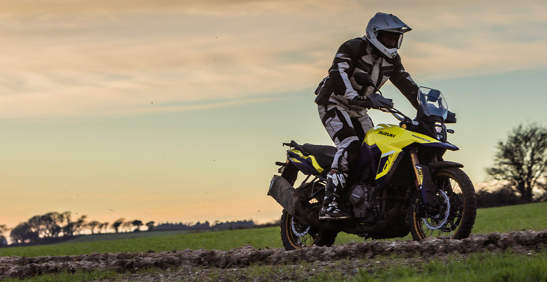 A V-STROM 800DE é uma aventureira de alto desempenho que é igualmente adequada para uso diário, na estrada e em passeios de alta velocidade, assim como para explorar estradas de cascalho e trilhas rurais. Cada aspecto do chassi foi projetado para promover excelente maneabilidade e controle em uma ampla gama de condições de pilotagem no mundo real, dando prioridade ao conforto e minimizando fadiga em viagens mais longas, mesmo quando transportando um passageiro e/ou levando malas. O robusto chassi de aço, a balança leve em alumínio de formato exclusivo, o pneu dianteiro de 21 polegadas, as rodas raiadas e a suspensão Hitachi Atemo (SHOWA), com curso suficiente para lidar com habilidade sobre o cascalho, são projetados para formar um pacote que fornece a resistência necessária para situações de pilotagens mais difíceis, trilhas, manuseio ágil, porem estável, e oferece bastante conforto em linha reta, em todas as velocidades. Embora o seu estilo permaneça fiel á herança V-STROM e ao espiríto de desing SUZUKI de criar expressões de estilos únicos, a V-STROM 800DE oferece o apelo de um novo visual totalmente moderno. O seu novo ""bico"" afiado está posicionado mais alto e mais afastado da roda dianteira para transmitir visualmente a sua capacidade de o levar além do local onde o pavimento termina. Seu conjunto de farol hexagonal de LED acentua a aparência elegante, leve e compacta da dianteira.