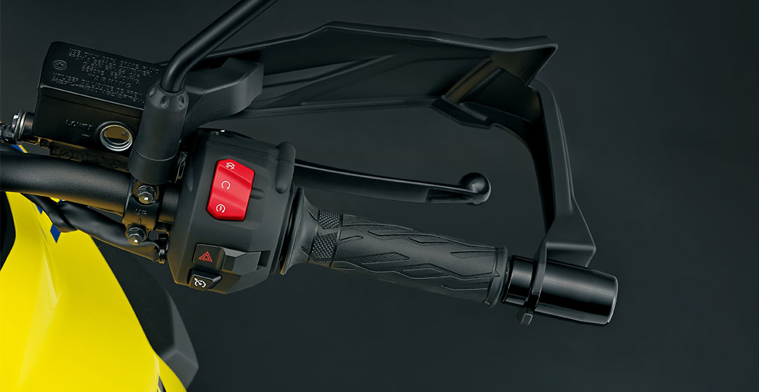 DESEMPENHO PARA AGRADAR O motor V-twin DOHC de 1.037 cm³ de quatro tempos e 90° da Suzuki apresenta forte torque linear na faixa de rotação média e uma natureza de rotação livre que maximiza a potência na faixa de alta rotação. Há também um prazer palpável, mas quase indescritível, em seu ruído característico do V-twin e na nota de escape. Seu layout V-twin também permite um design de chassi mais fino com um centro de gravidade mais baixo, o que contribui para um manuseio mais ágil e maior manobrabilidade.