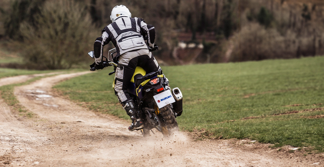 A V-STROM 800DE é uma aventureira de alto desempenho que é igualmente adequada para uso diário, na estrada e em passeios de alta velocidade, assim como para explorar estradas de cascalho e trilhas rurais. Cada aspecto do chassi foi projetado para promover excelente maneabilidade e controle em uma ampla gama de condições de pilotagem no mundo real, dando prioridade ao conforto e minimizando fadiga em viagens mais longas, mesmo quando transportando um passageiro e/ou levando malas. O robusto chassi de aço, a balança leve em alumínio de formato exclusivo, o pneu dianteiro de 21 polegadas, as rodas raiadas e a suspensão Hitachi Atemo (SHOWA), com curso suficiente para lidar com habilidade sobre o cascalho, são projetados para formar um pacote que fornece a resistência necessária para situações de pilotagens mais difíceis, trilhas, manuseio ágil, porem estável, e oferece bastante conforto em linha reta, em todas as velocidades. Embora o seu estilo permaneça fiel á herança V-STROM e ao espiríto de desing SUZUKI de criar expressões de estilos únicos, a V-STROM 800DE oferece o apelo de um novo visual totalmente moderno. O seu novo ""bico"" afiado está posicionado mais alto e mais afastado da roda dianteira para transmitir visualmente a sua capacidade de o levar além do local onde o pavimento termina. Seu conjunto de farol hexagonal de LED acentua a aparência elegante, leve e compacta da dianteira.